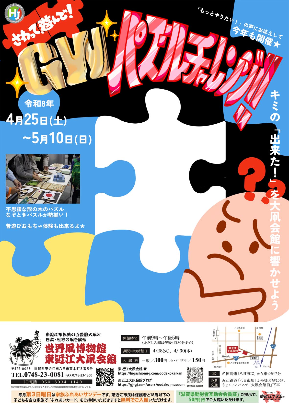 体験型イベント「さわって、遊んで!GWパズルチャレンジ!」4/25(土)~5/10(日)開催<主催:東近江大凧会館>
